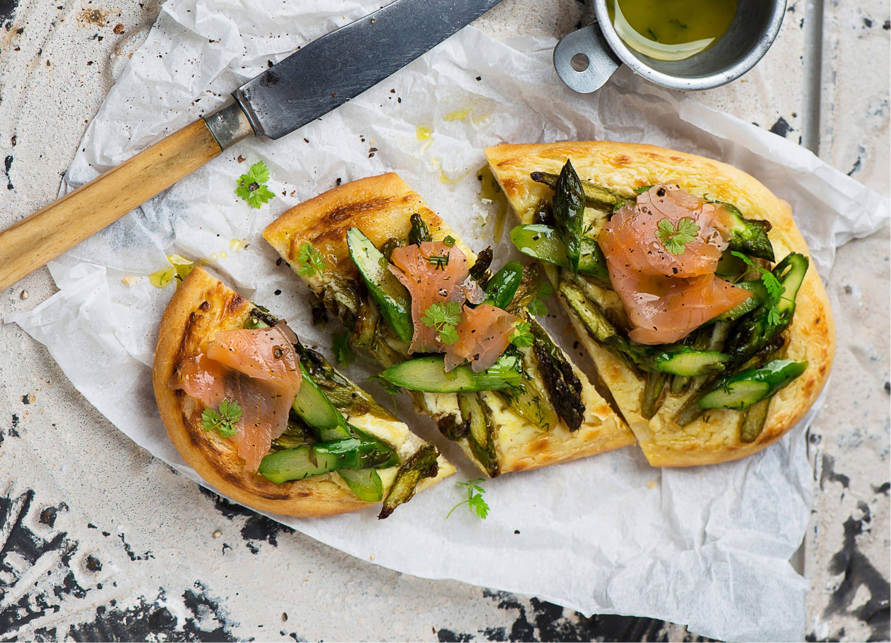 Spargel-Flammkuchen mit Räucherlachs